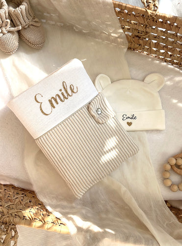 Ensemble Mini Doux – Protège-carnet & Bonnet ourson