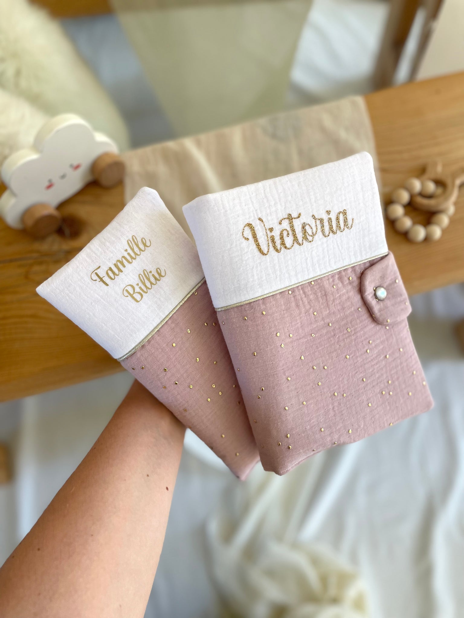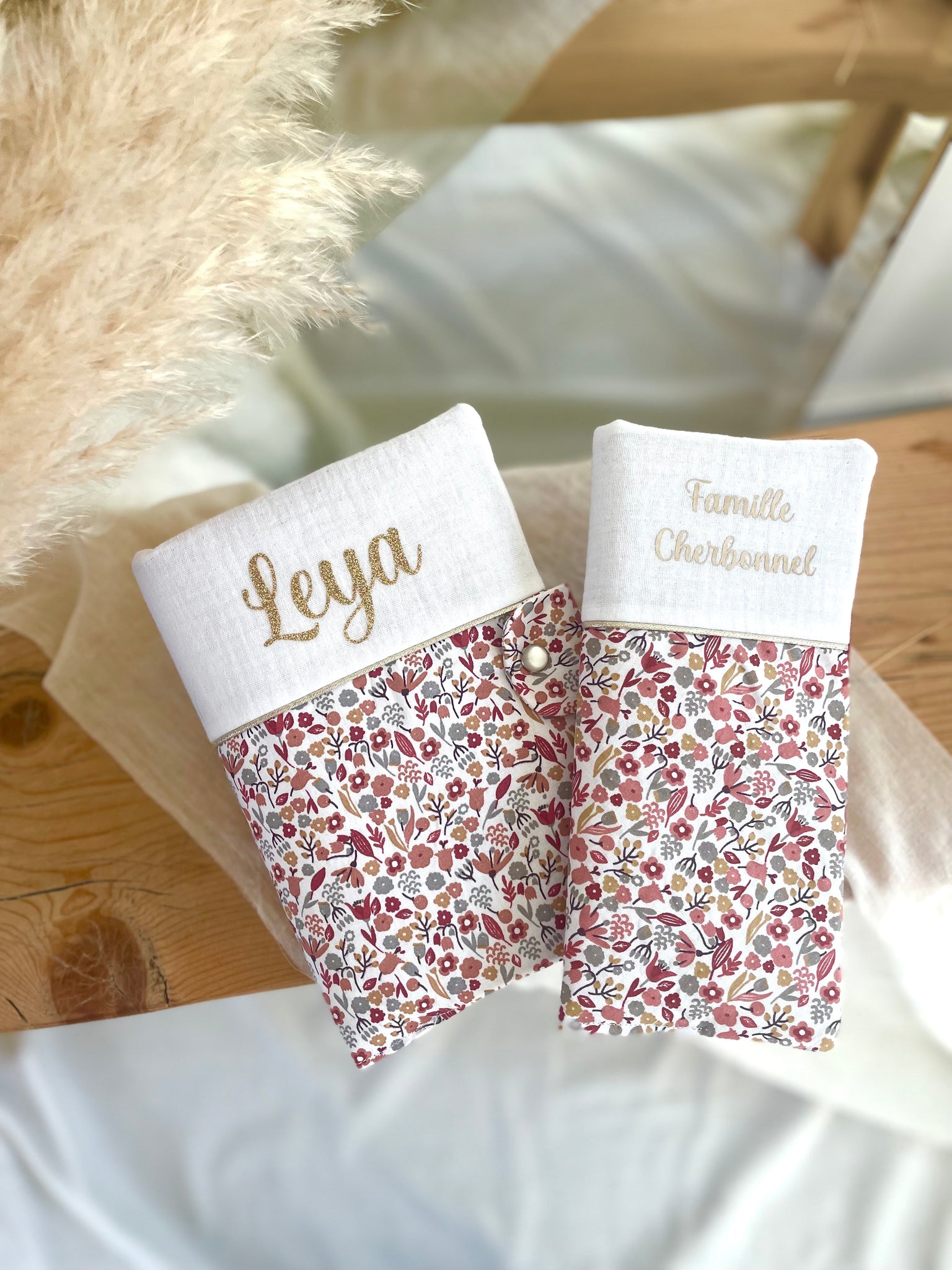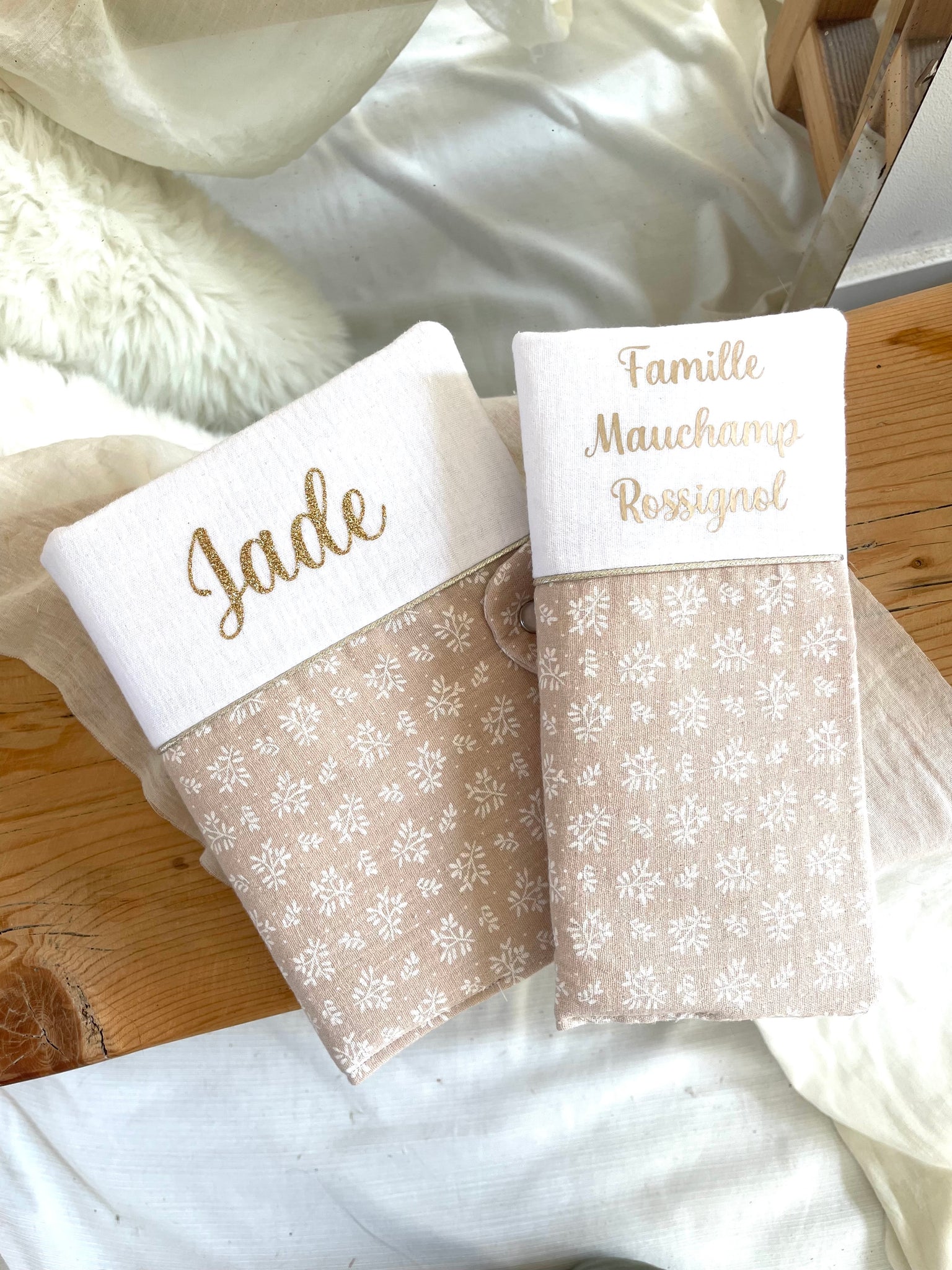 Parce que les premiers papiers et informations de bébé et le livret de famille méritent eux aussi d’être protégés avec soin, j’ai imaginé ce duo assorti !